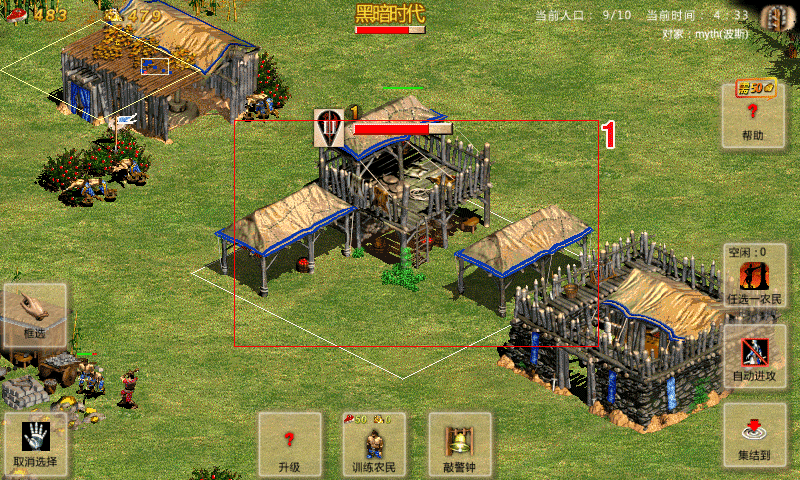 1、本游戏只提供一个城镇中心(如图中的①),如果它被灭了,你就输了。